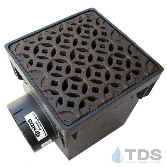NDS 9" Catch Basin Kit with Iron Age Interlaken Grate | Baked on Oil Finish