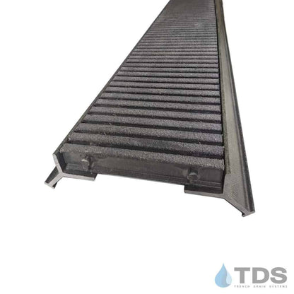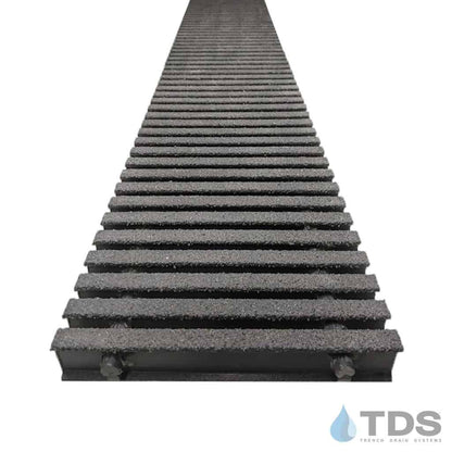 Fiberglass FRP kit with 9" wide I-Bar grate(s) and the WYE frame creates an excellent system for applications where longer support spans are required, such as roadways and parking areas. This kit allows a custom concrete-poured trench to be built using the frame shape as the kit's anchoring system, locking the frame into the concrete pour. The grates are manufactured with layers of resin and fiberglass strands to create better traction than metal bar grating. This kit, when properly installed, has a Load Class C traffic rating.