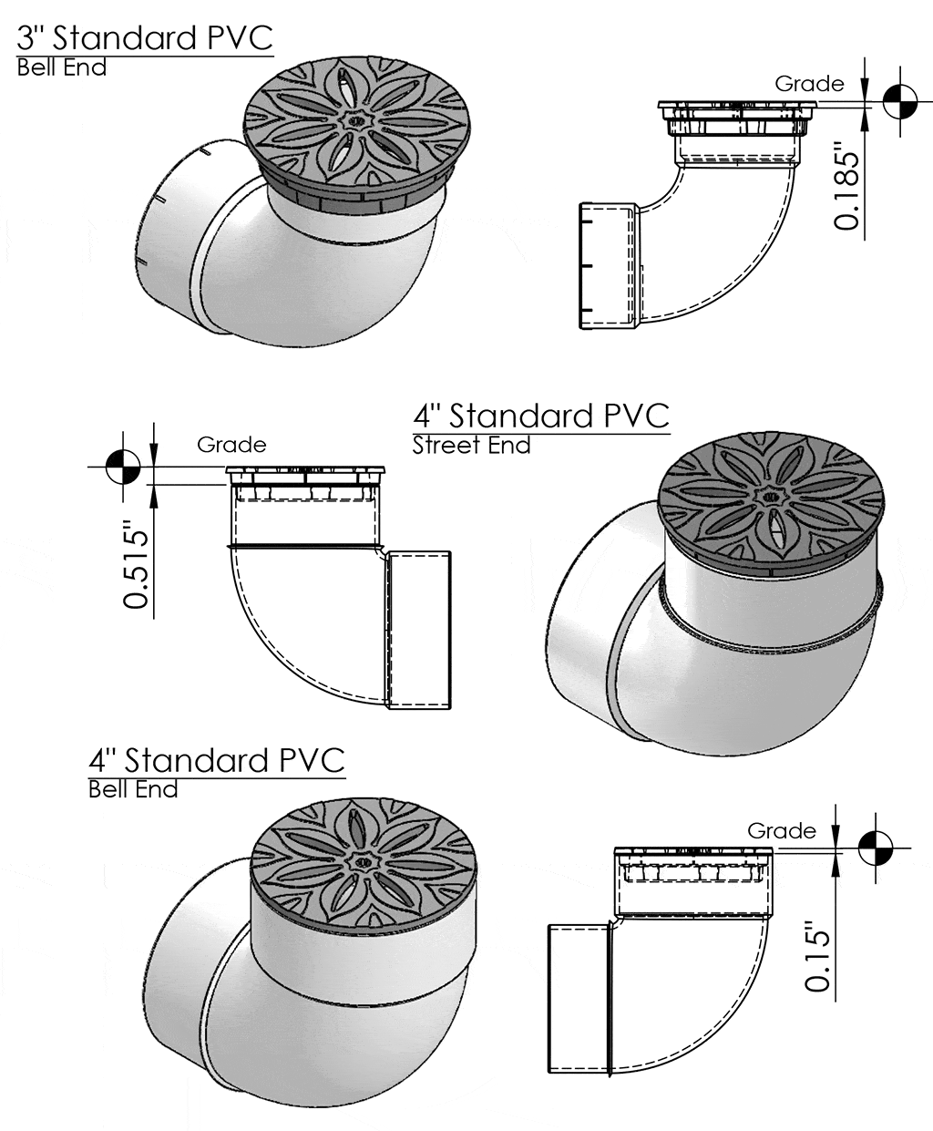 Top off a drain pipe with our decorative grate in the Anise pattern. Iron Age’s 4" dia. decorative iron grates fit directly into 3" and 4" PVC pipes.