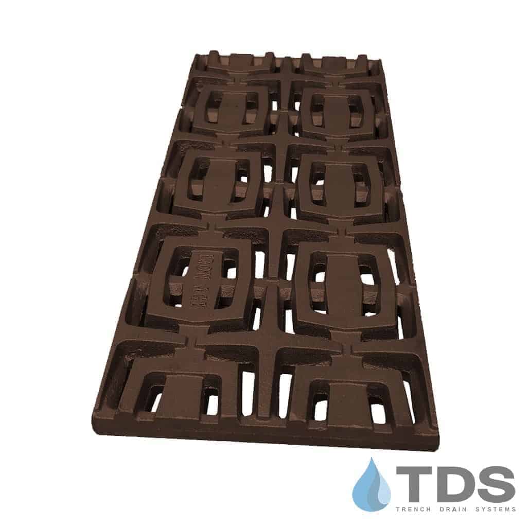 Decorative cast iron trench grate designed to fit the 8" Pro Series by NDS. The Carbochon pattern is available in either the raw casting or Baked on Oil Finish (BoOF).
