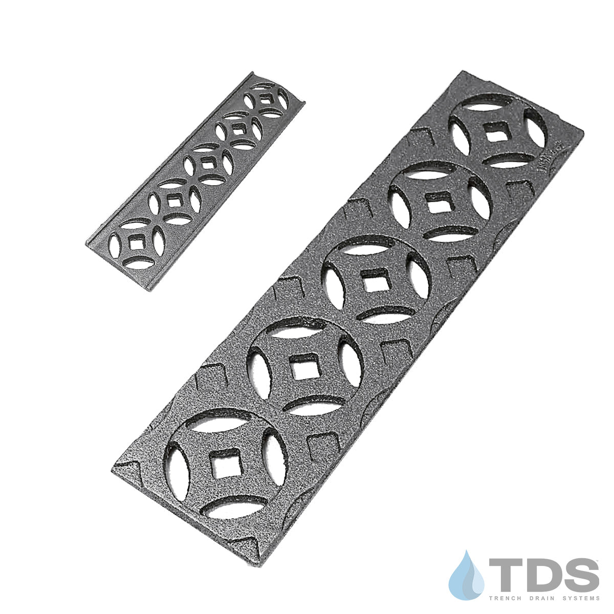 Decorative Iron Age grate with the Interlaken pattern and is available in either the raw casting or Baked-on Oil Finish.