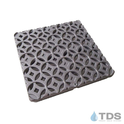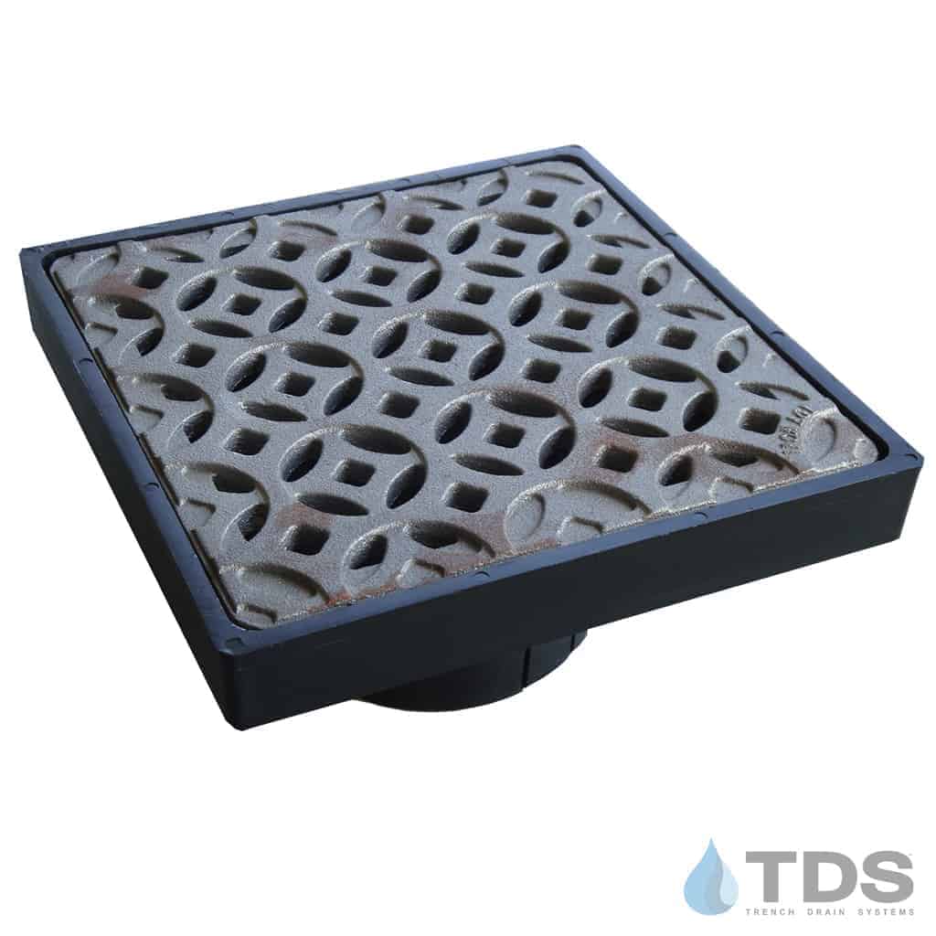 Add distinction and beauty to your patio or landscape while draining your water worries away at the same time. Our Low Profile Catch Basin Kit features an NDS 12" x 12" low profile catch basin, a choice of 3-4" or 6" pipe adapter, and the intricate Interlaken cast iron grate. This fast draining system is designed for bottom outlet into your drainage pipe. Grate provided in natural raw casting.