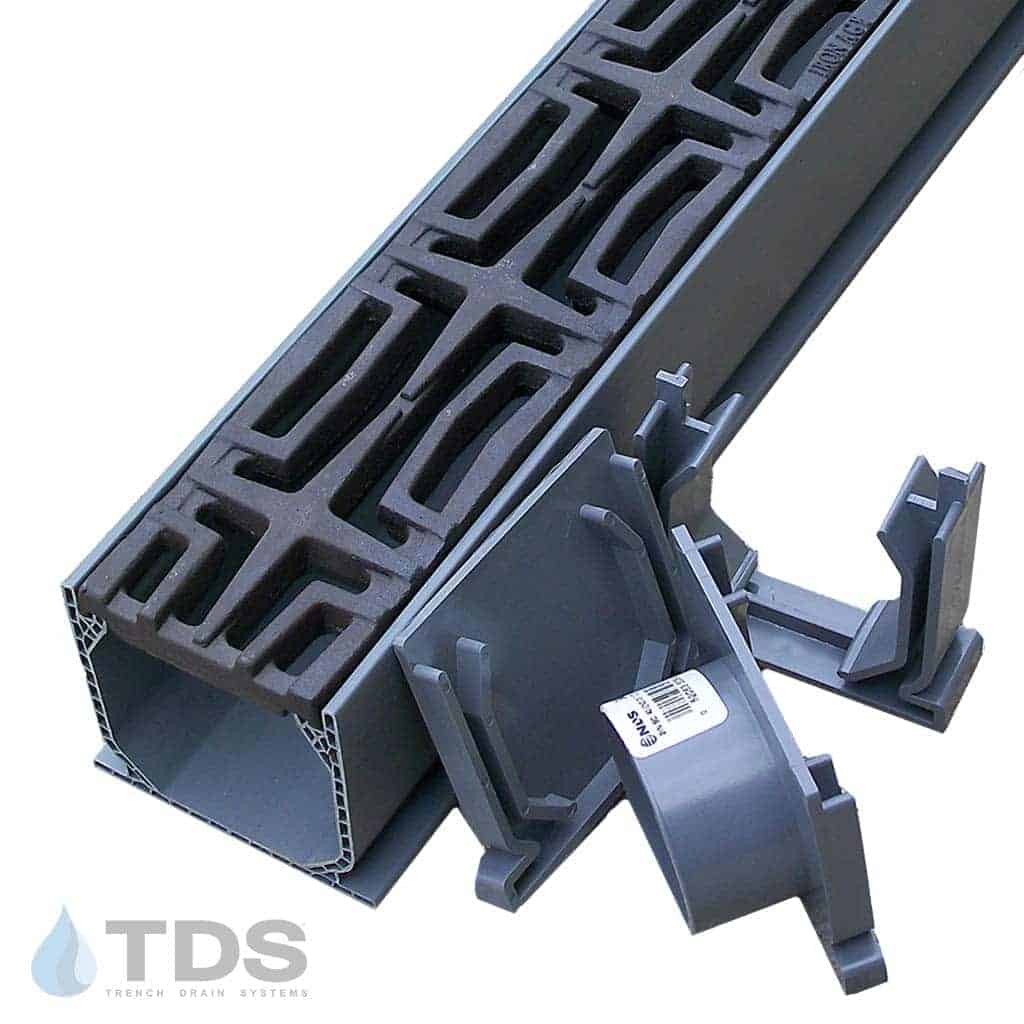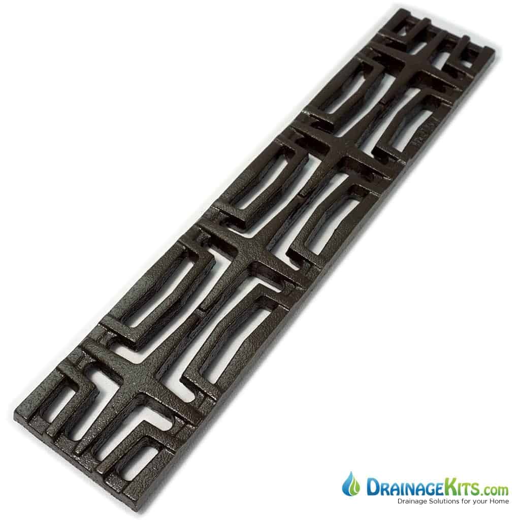Mini Channel plastic drain is a non-sloped system built for light traffic applications such as pools, patios, and walkways. The channel is UV-protected and manufactured from durable lightweight polyolefin. This kit has a cast iron grate in the Carbochon pattern by Iron Age with a Baked on Oil Finish.