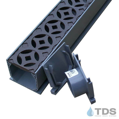 Mini Channel plastic drain is a non-sloped system built for light traffic applications such as pools, patios, and walkways. The channel is UV protected and manufactured from durable lightweight polyolefin. This kit has a cast iron grate in the Interlaken pattern by Iron Age with a Baked on Oil Finish.