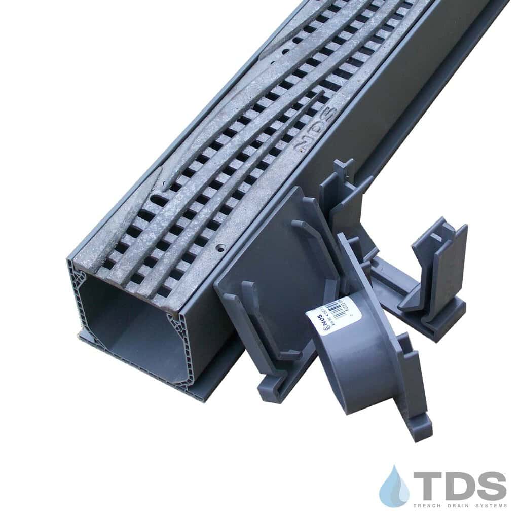 Mini Channel plastic drain is a non-sloped system built for light traffic applications such as pools, patios, and walkways. The channel is UV protected and manufactured from durable lightweight polyolefin. This kit has a cast iron grate in the Wave pattern by NDS.
