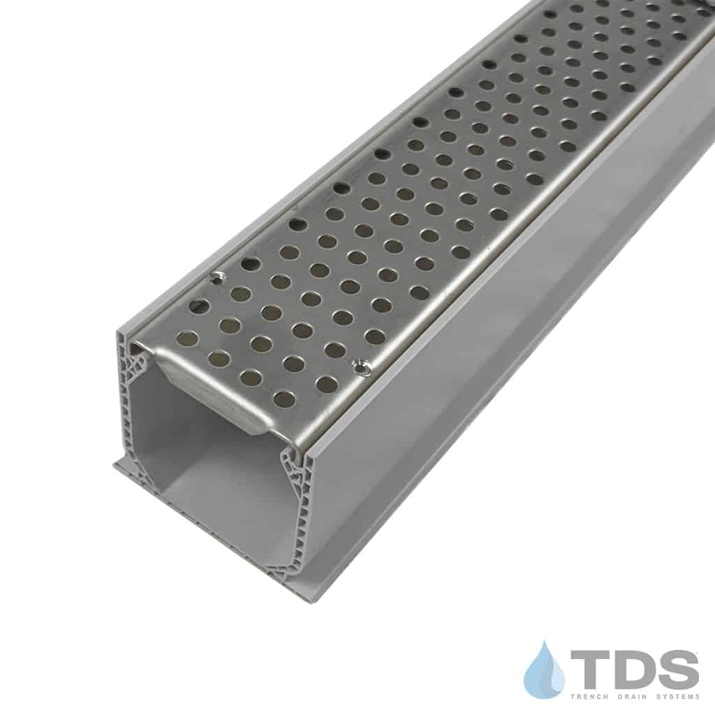 Mini Channel plastic drain is a non-sloped 3" wide system built for light Load Class A or B traffic applications such as pools, patios, and walkways. The channel is UV-protected and manufactured from durable lightweight polyolefin. Made is the USA.
