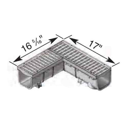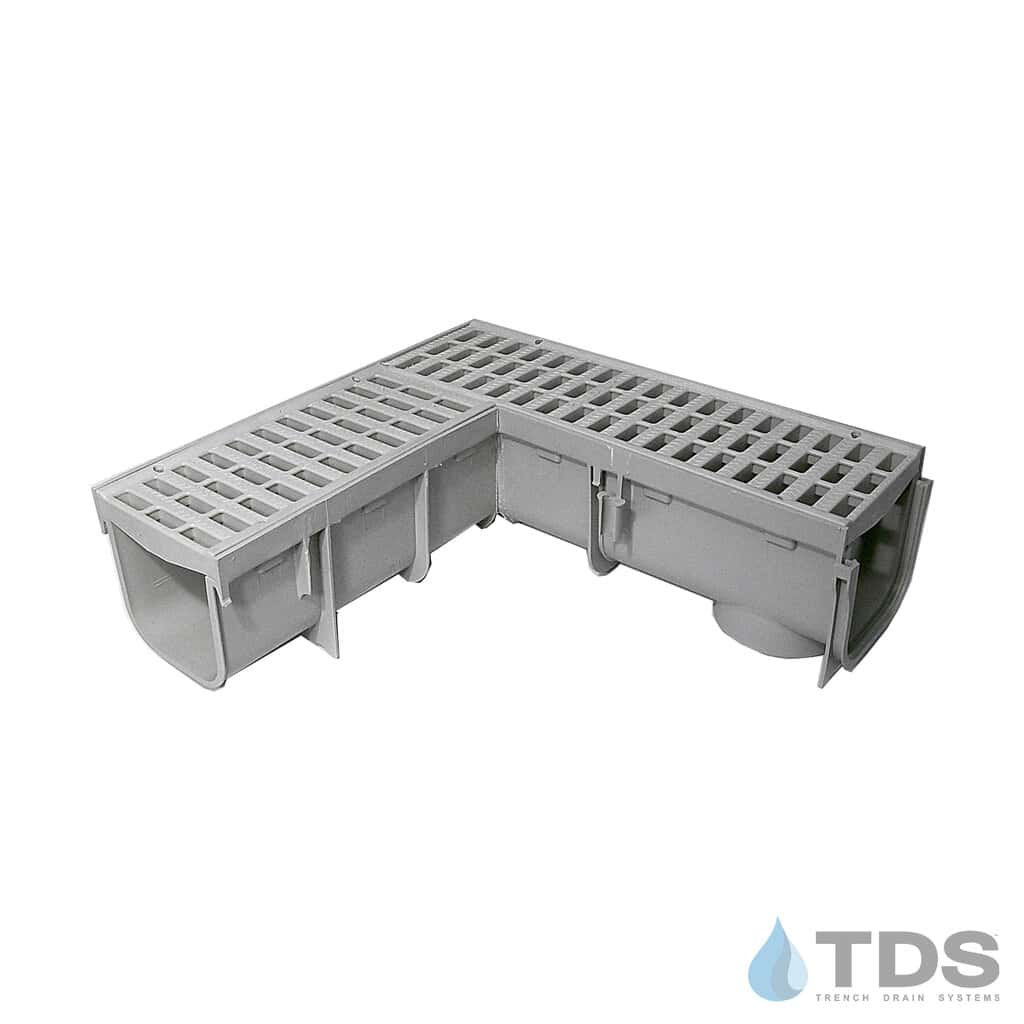 90 Degree elbow for the NDS® Pro Series Deep Profile 5-inch system.  Supplied with standard light grey grate.