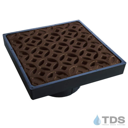 Add distinction and beauty to your patio or landscape while draining your water worries away at the same time. The little brother to our 12-inch offering, this Low Profile Catch Basin Kit features an NDS 9" x 9" low profile catch basin, a choice of 3-4" pipe or 6" adapter for connecting to your pipe, and the intricate Interlaken cast iron grate. This fast-draining system is designed for a bottom outlet into your drainage pipe.