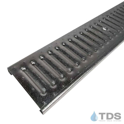 DG0640H - Galvanized Slotted grate - 14 ga. steel. Fits POLYCAST® 500, 600 and 700 Series trench drains. Tapered center hole for flat head locking device (not included)
