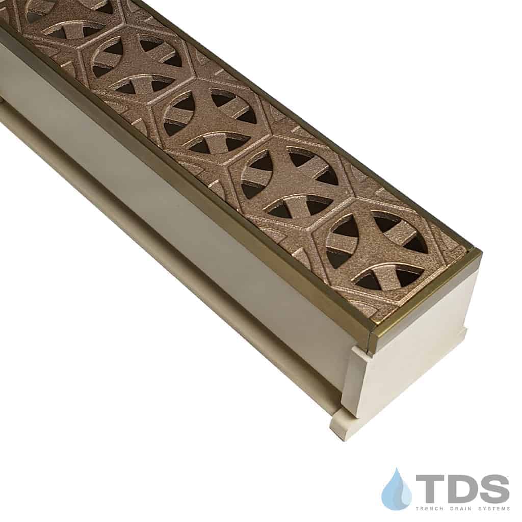 The MAX Mini is an enhanced Mini Channel system that features bronze veneer edging and bronze slotted grates in brushed or natural finish.