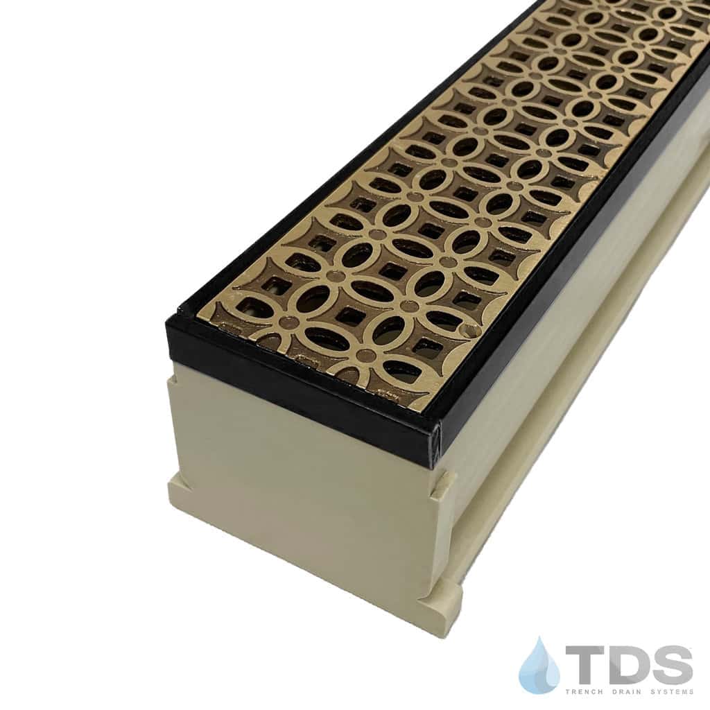 The TDS MAX Mini™ is an enhanced 3" NDS® Mini Channel system that features custom edging and TDS-exclusive Bronze Age™ grates in brushed or natural finish. Grates are made in the USA and are excellent for light-duty applications including residential pools, patios, spas, and tennis courts. Load Class A or B rating if properly installed, see specification sheets for details.