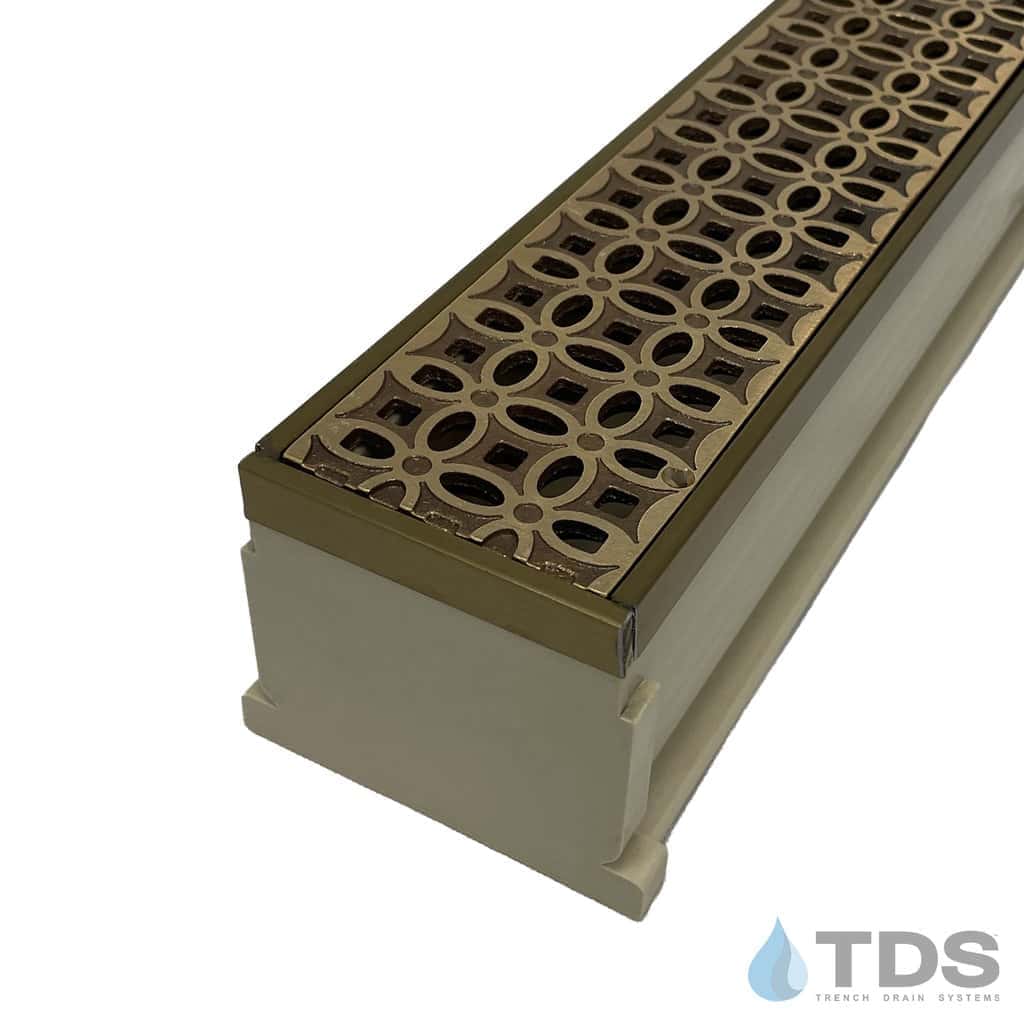 The TDS MAX Mini™ is an enhanced 3" NDS® Mini Channel system that features custom edging and TDS-exclusive Bronze Age™ grates in brushed or natural finish. Grates are made in the USA and are excellent for light-duty applications including residential pools, patios, spas, and tennis courts. Load Class A rating or B if properly installed, see specification sheet for details.