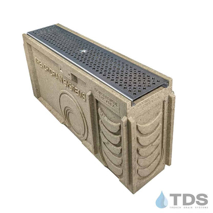The TV0650S can be used as an individual catch basin or in tandem with a vinyl ester POLYCAST® trench drain system. This neutral short catch basin accepts the same grating options, edging, and frames as the POLYCAST® 600/700 drain systems.