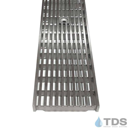 This grate has a Load Class C rating for high traffic areas such as driveways and parking lots. The 316L stainless steel material is marine grade and saltwater resistant to withstand the corrosive environments of pools, spas, kennels, zoos, breweries, wineries and food processing facilities.