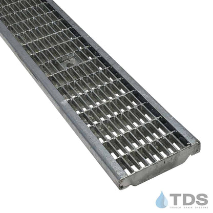 The ULMA D100 is a neutral polymer concrete linear trench drain channel with stepped edges for lateral protection. The polymer concrete material allows the channels to have higher impact resistance. It also provides a smooth channel surface with a near zero absorption rate which increases the flow rate, in comparison to concrete which has a 5-10% absorption rate. The ULMA D100 channels are resistant to 59 different chemicals. (Not rated for sanitary or high-temp applications.)