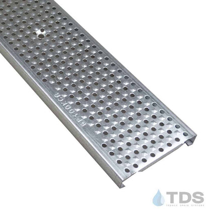 The ULMA D100 is a neutral polymer concrete linear trench drain channel with stepped edges for lateral protection. The polymer concrete material allows the channels to have higher impact resistance. It also provides a smooth channel surface with a near zero absorption rate which increases the flow rate, in comparison to concrete which has a 5-10% absorption rate. The ULMA D100 channels are resistant to 59 different chemicals. (Not rated for sanitary or high-temp applications.)