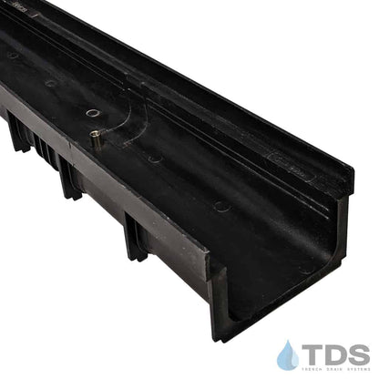 New from ULMA, the HYDROPLUS Mini is a shallow neutral trench drain for pedestrian and occasional car traffic for areas of low hydraulic requirements. Polypropylene channel externally measures 132mm wide, internal width of 100mm, and overall height 84mm and 1 meter in length. Compatible with the same full line of grates as offered for the ULMA polymer concrete channels, this system offers a wide variety of options. Although the grates are listed as a load class B, this system is rated as A, or B depending upon installation.