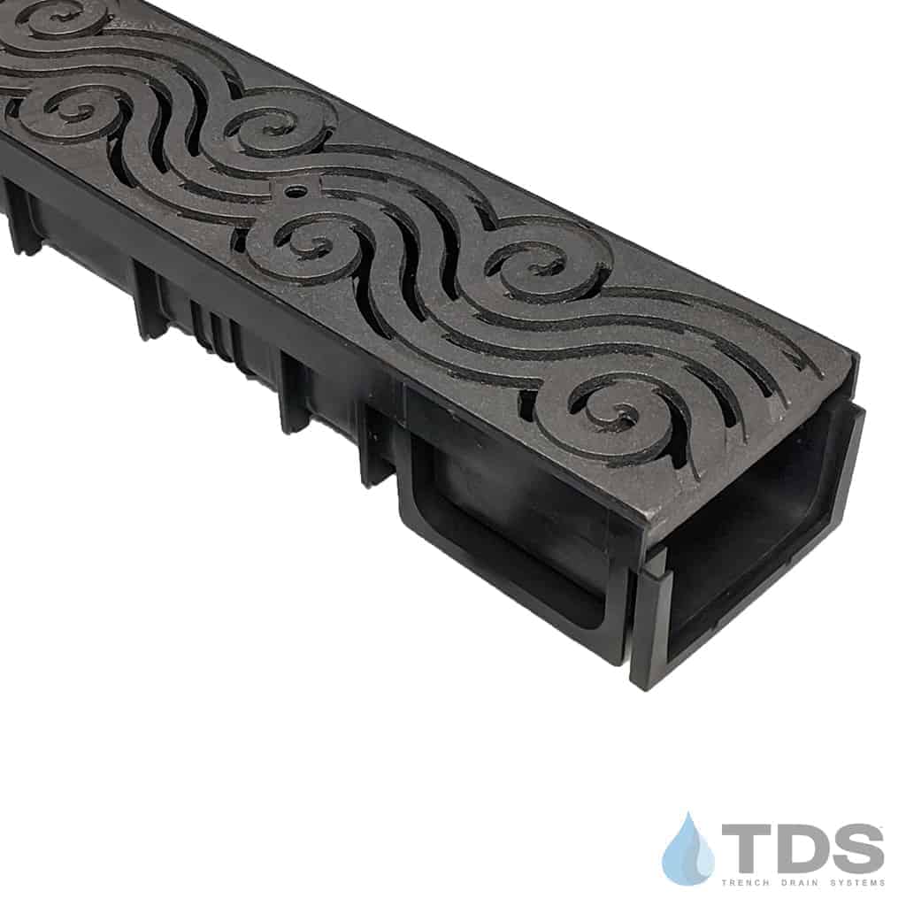 The Ductile Iron Grate (IA-ARGO-0520-HP) is rated as a Load Class B, and measures 19-7/16" x 4-13/16" (122mm X 494mm).