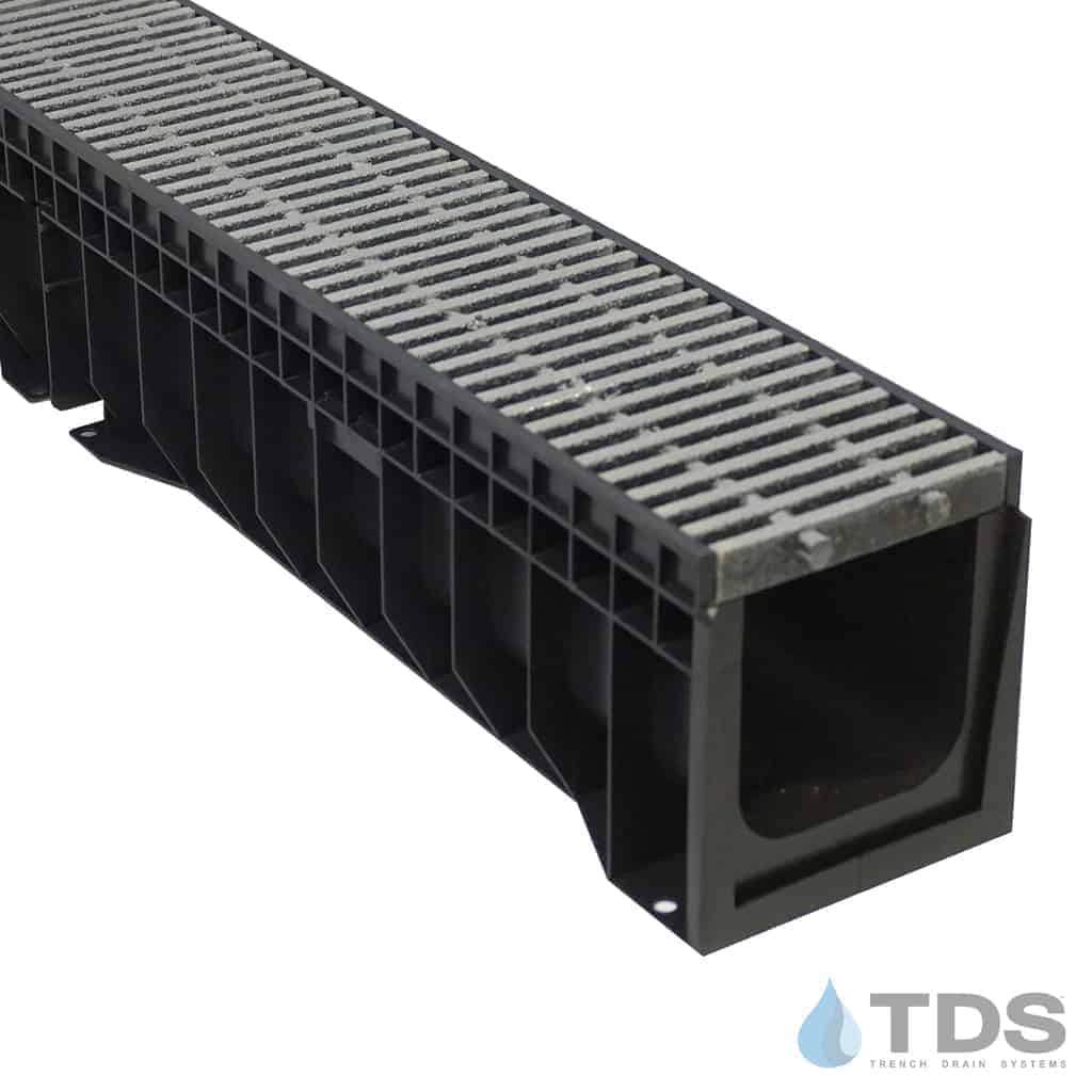 New from ULMA, the HYDROPLUS is a polypropylene trench drain for pedestrian and occasional car traffic for areas of low hydraulic requirements. Channel external width is 138mm, internal width 100mm and overall height 148mm and 1 meter in length. The HYDROPLUS is compatible with the same full line of grates as offered for the ULMA polymer concrete channels, offering a wide variety of options. The HYDROPLUS with the Vinyl Ester FRP (SKU#488) slots measure 0.6" on center and is rated as a Load Class C. Grate measures 39.13" x 4.81" (1 grate per 1M channel section.) Channels are marked to aid in cutting to 0.5M length if needed.