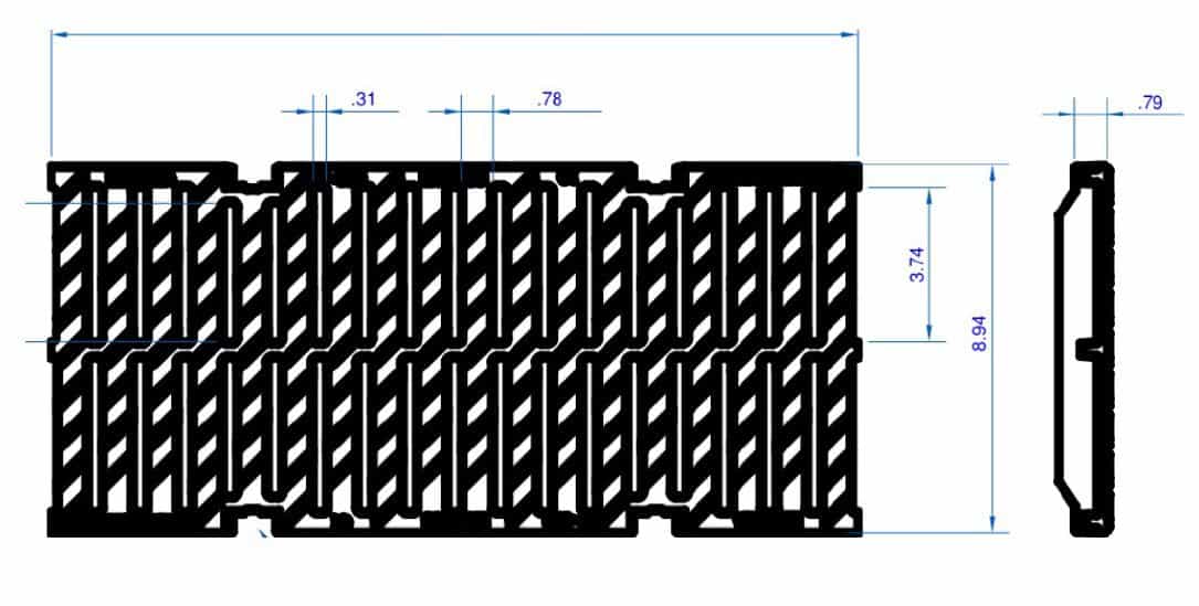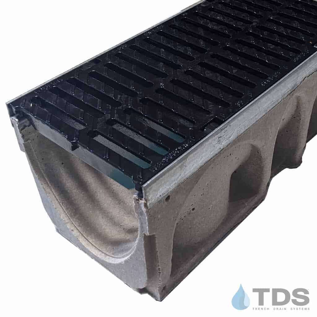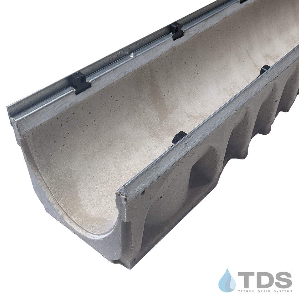 Each 1-meter channel provides a .5% slope. An external width of 9.29" (236mm), internal width of 7.87" (200mm), and variable heights make this drain channel suitable for a variety of applications including parking lots, and commercial, or pedestrian traffic areas.