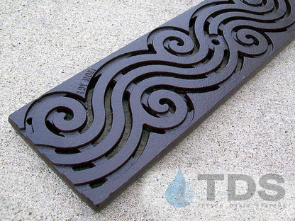 ULMA's U100KX channel fits Iron Age Designs decorative cast iron trench grating measuring 122 mm x 498 mm. This kit has the heel proof Argo pattern, which is available in either the raw casting or Baked on Oil Finish (BoOF)