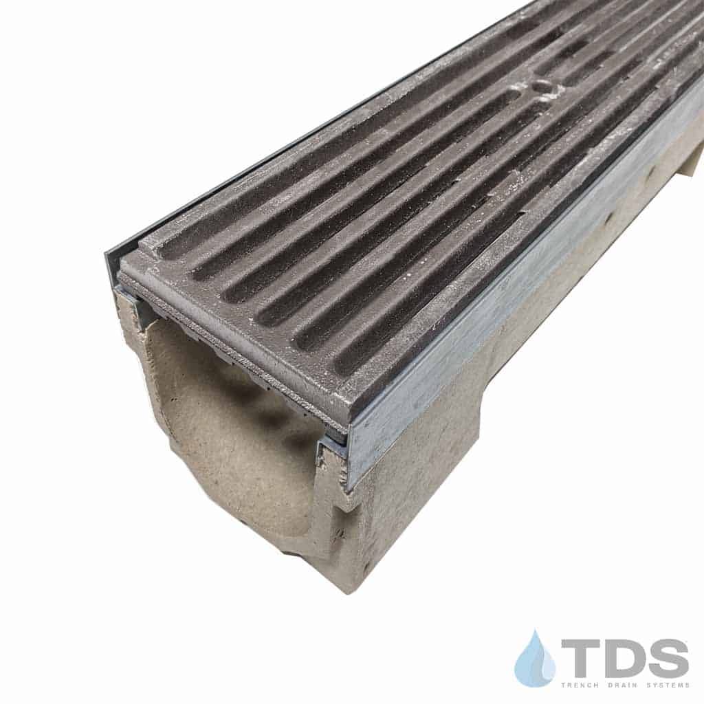 Ulma's U100KX channel fits Iron Age Designs decorative cast iron trench grating measuring 122 mm x 498 mm. This kit has the Heel Proof Que pattern, which is available in either the raw casting or Baked on Oil Finish (BoOF).