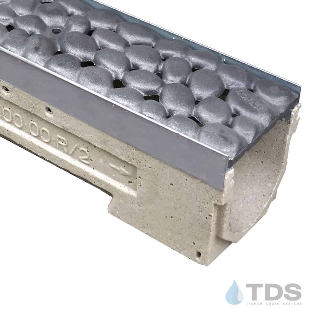 ULMA's U100KX channel fits Iron Age Designs decorative cast iron trench grating measuring 122 mm x 498 mm. This kit is available in either the raw casting or Baked on Oil Finish (BoOF).